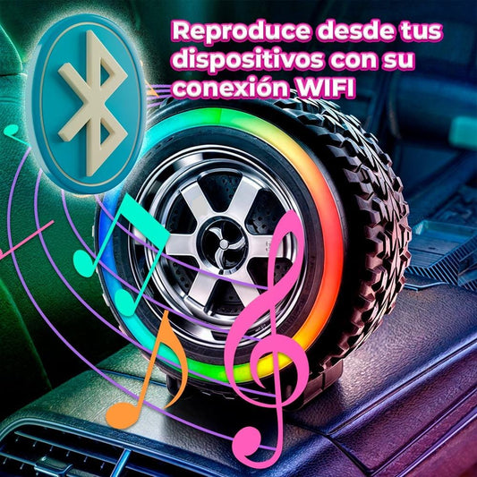PARLANTE BLUETOOTH FORMA DE LLANTA LUZ LED RGB USB-Micro SD